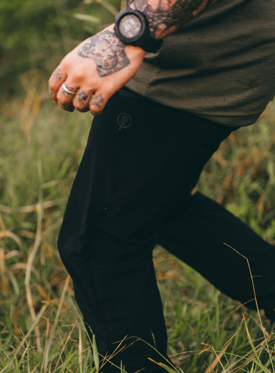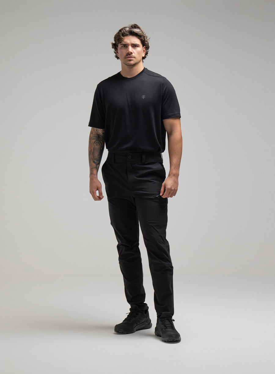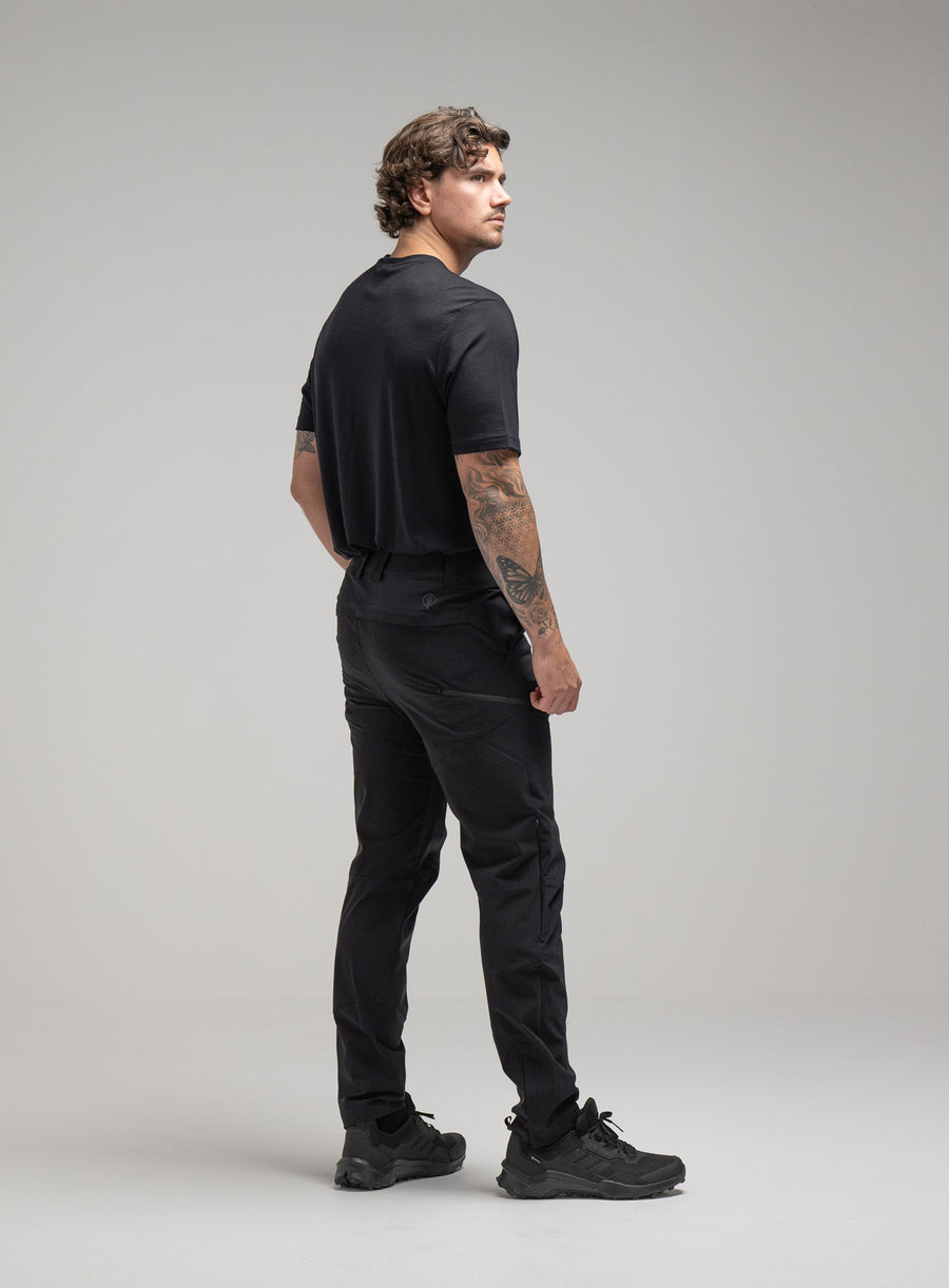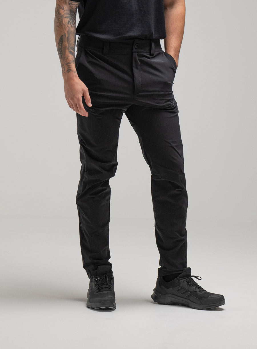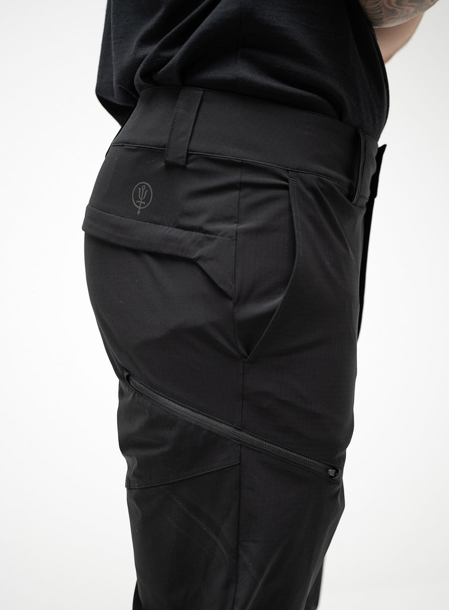 The Oryon Carbon Black Trousers are constructed from a next-generation, chrono-carbon rip-stop fabric chosen specifically for expeditions in high temperatures. This smart fabric provides a high level of stretch capability whilst remaining hard-wearing but most significantly it is imbued with a carbon filament.