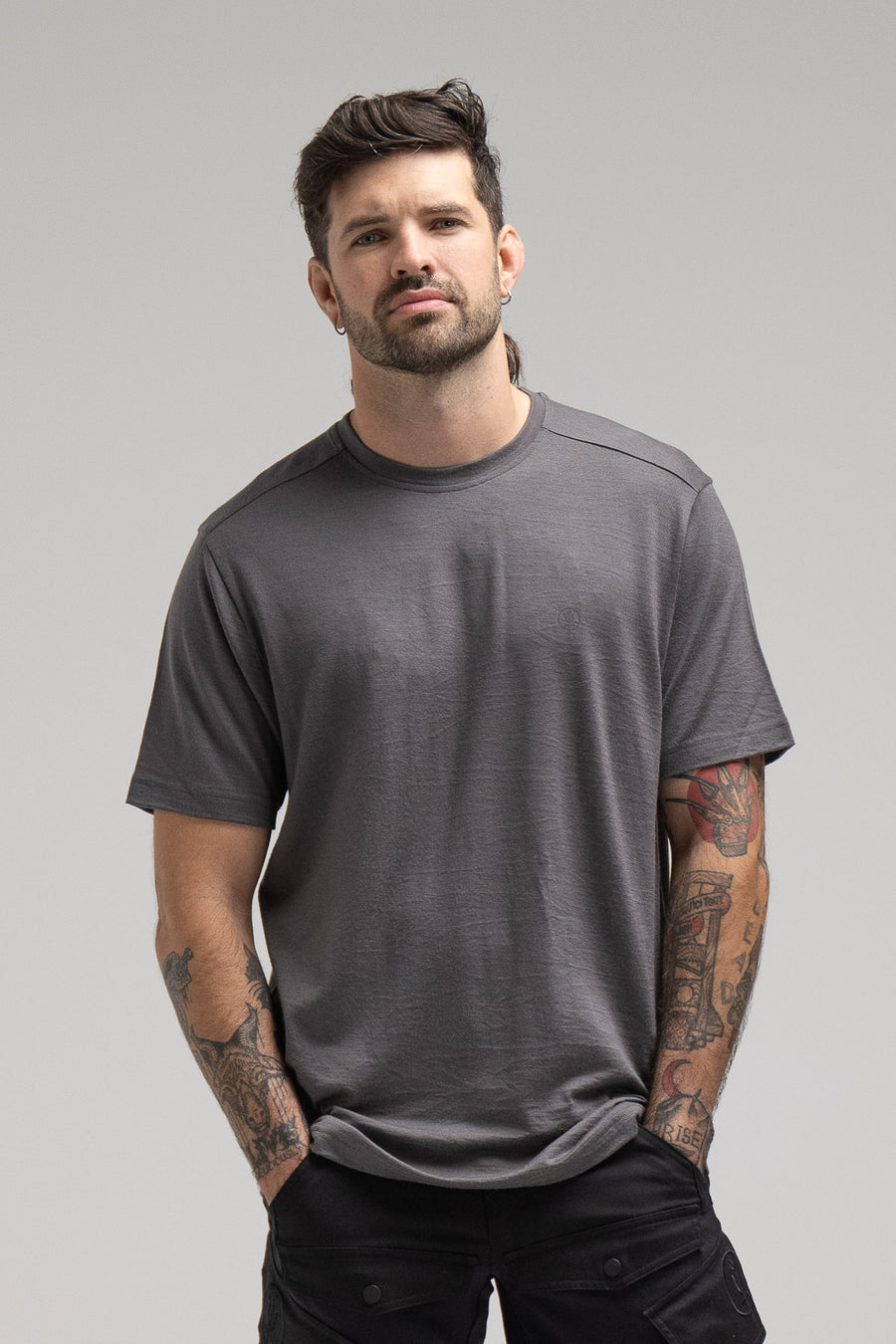 Men's grey 100% merino wool t-shirt for hot weather