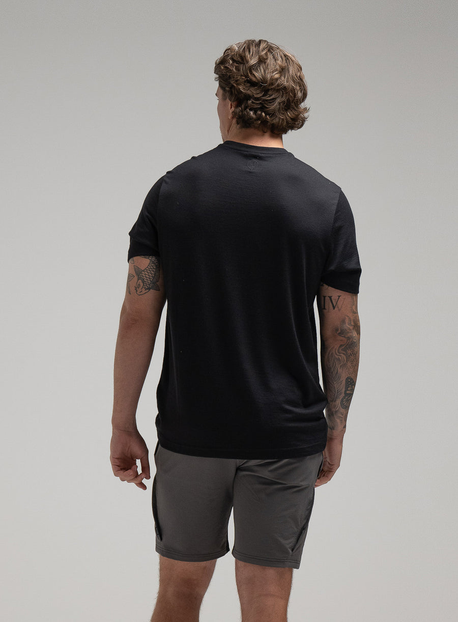 Men's black 100% merino wool t-shirt for hot weather
