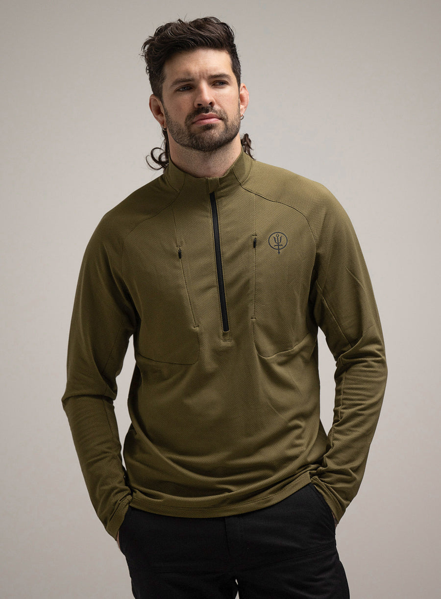 Men's green breathable long sleeve t-shirt for hot weather
